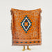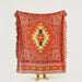 Full view of terracotta boho cotton throw displaying central diamond and arrows motif