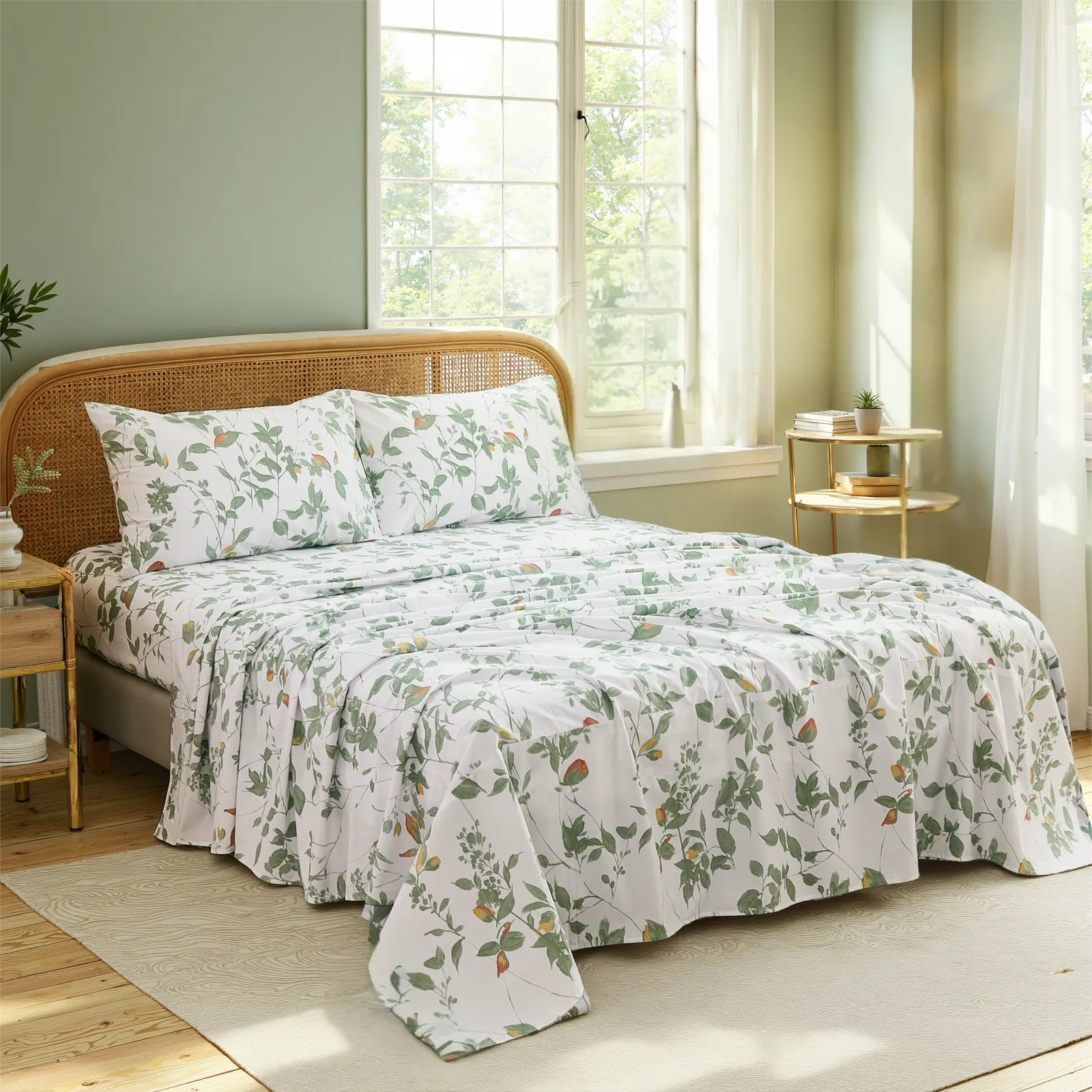 The green leaf pattern captures the refreshing simplicity and minimalist essence of a tranquil botanical oasis. This design transforms your room into a restorative natural sanctuary, where lush foliage brings a sense of clarity and modern calm.