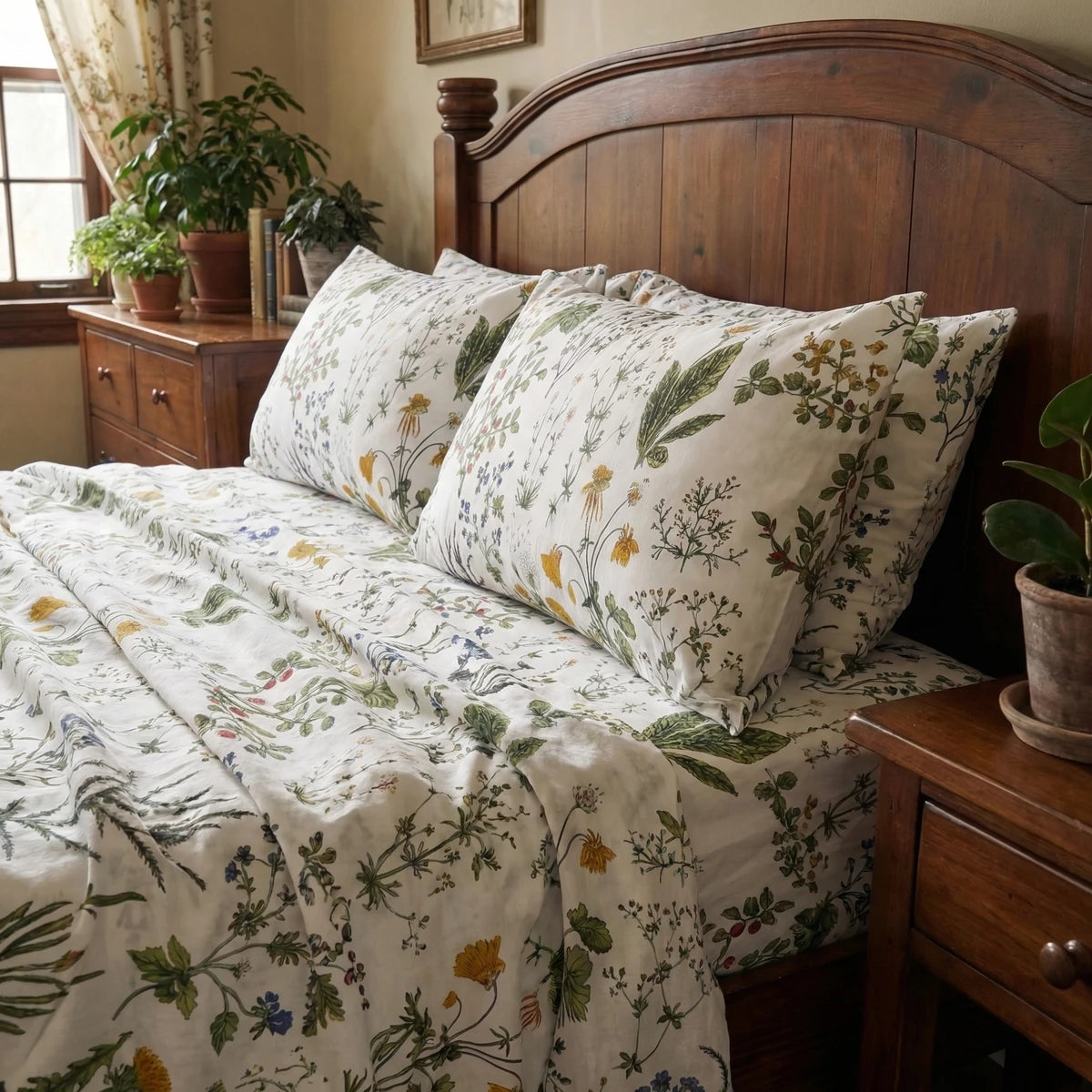 The vintage sage green floral pattern provides a calming, ea rthy elegance, reminiscent of peaceful forests. This design transforms your room into a serene garden sanctuary, using soft, natural hues to promote tranquility.